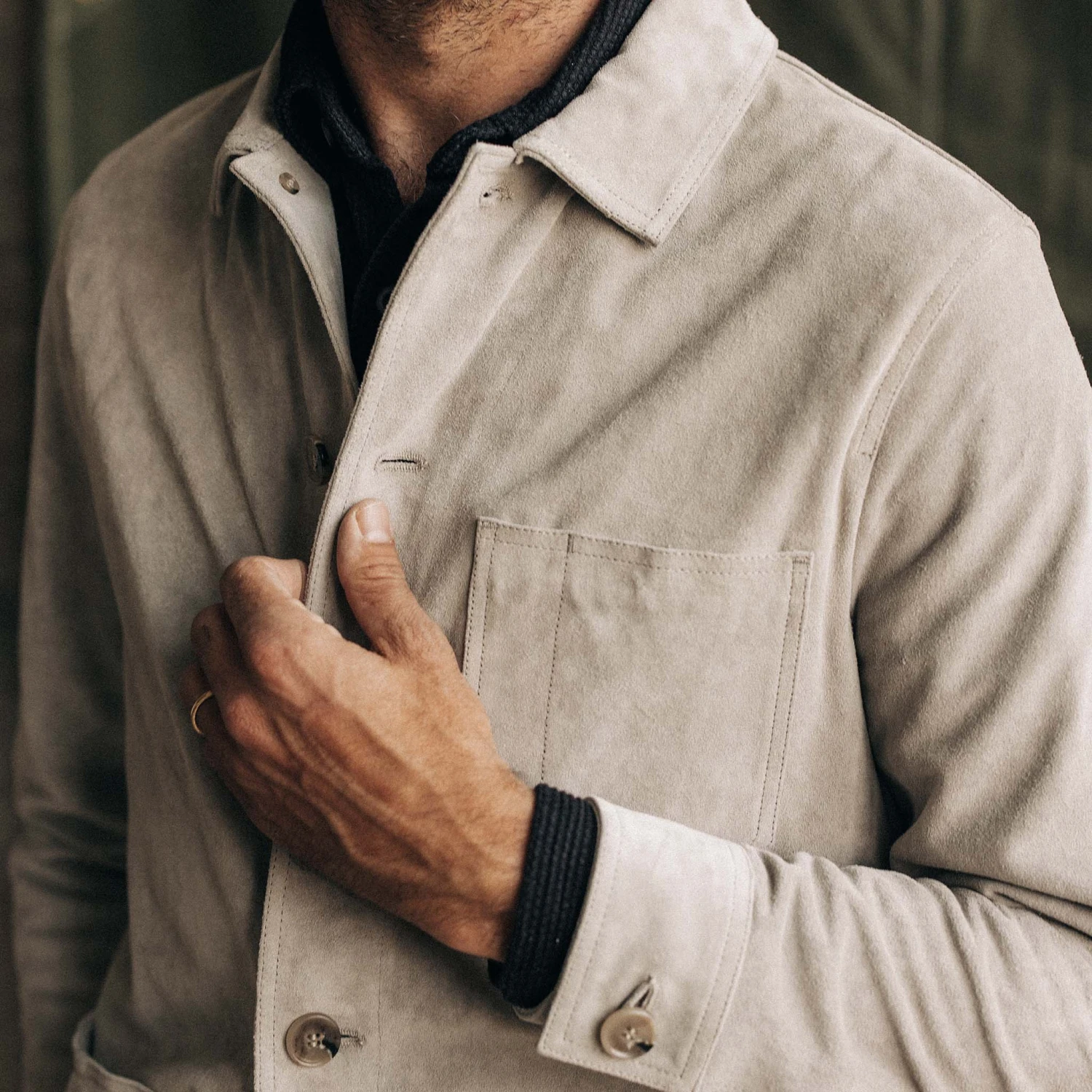 The Ojai Jacket in Oyster Suede from Taylor Stitch
