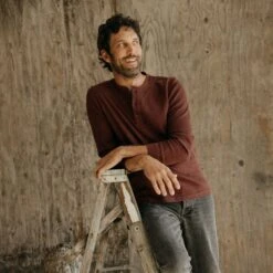The Organic Cotton Waffle Henley in Burgundy from Taylor Stitch