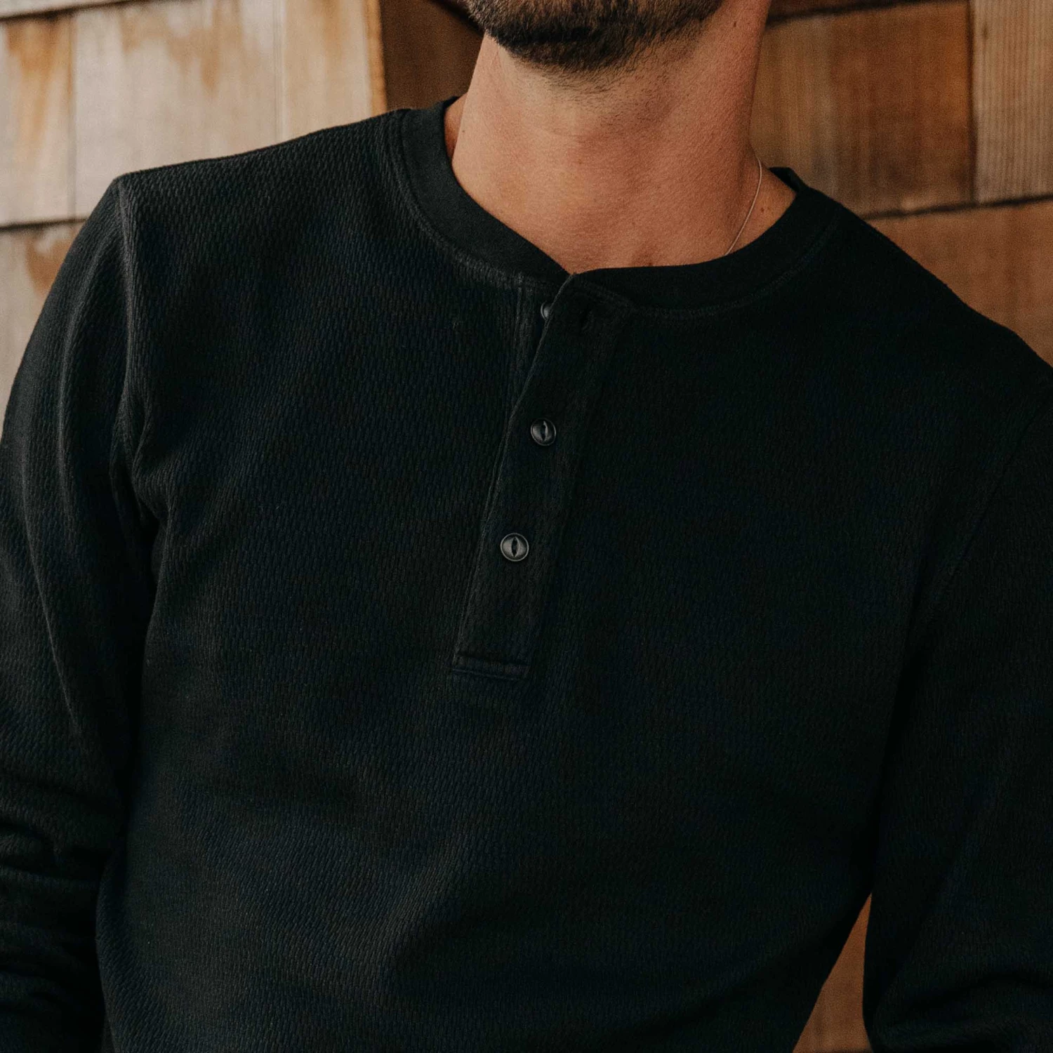 The Organic Cotton Waffle Henley in Coal from Taylor Stitch