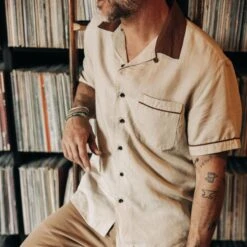 - Camp collar (no collar stand) meant to be worn open.