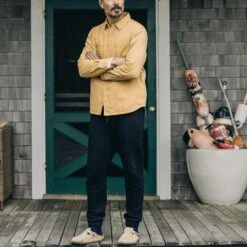 The Quilted Jersey Pant in Midnight Heather from Taylor Stitch