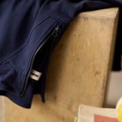 - 13.5-oz. 100% organic cotton rib at cuff, waistband, side panel, yoke, and interior collar.