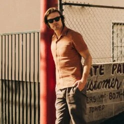 The Short Sleeve Hawthorne in Rust Pickstitch Waffle from Taylor Stitch