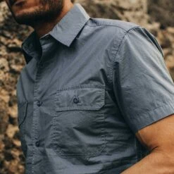 The Short Sleeve Officer Shirt in Slate from Taylor Stitch