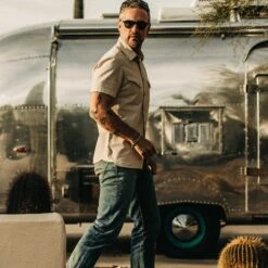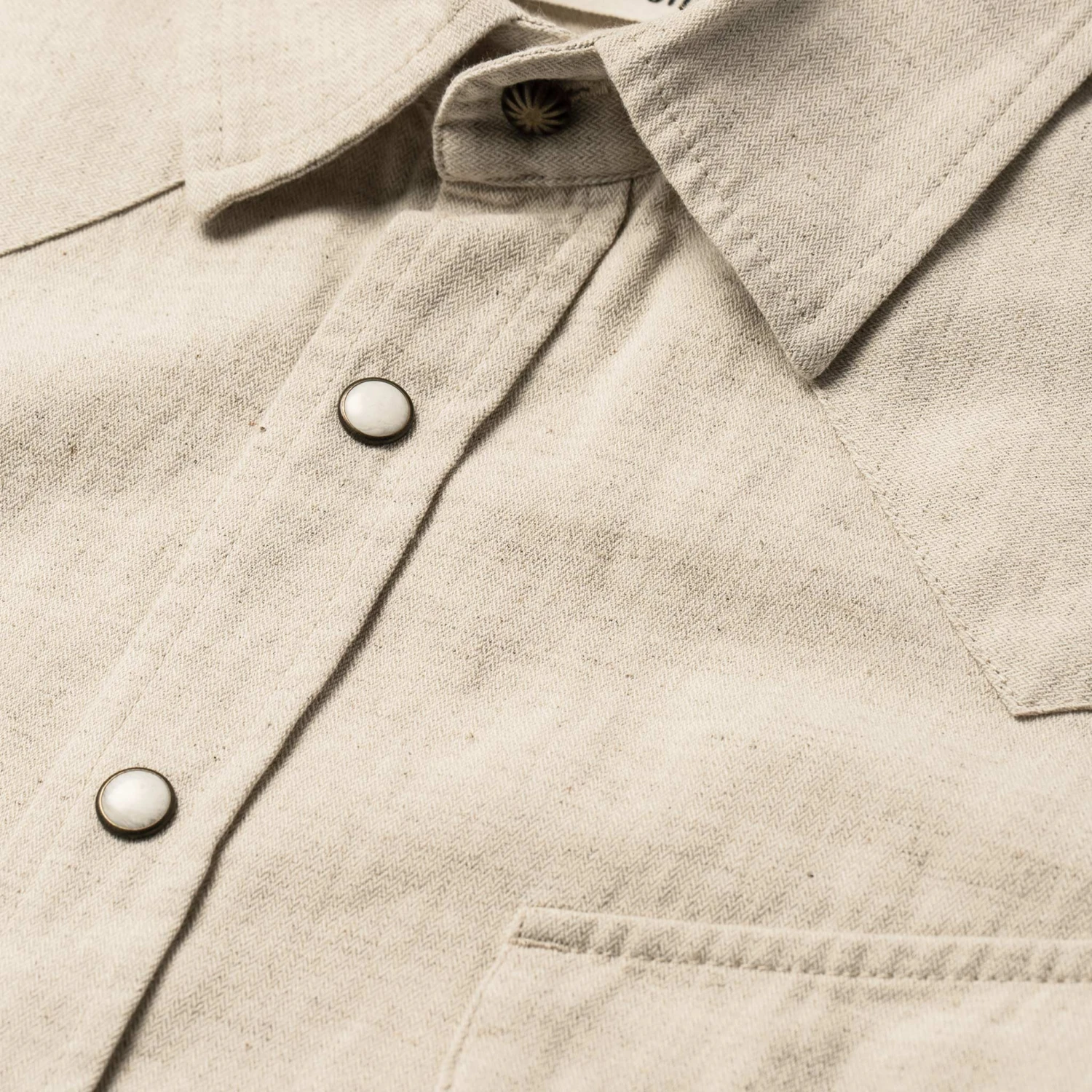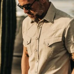 The Short Sleeve Western in Natural Herringbone from Taylor Stitch.