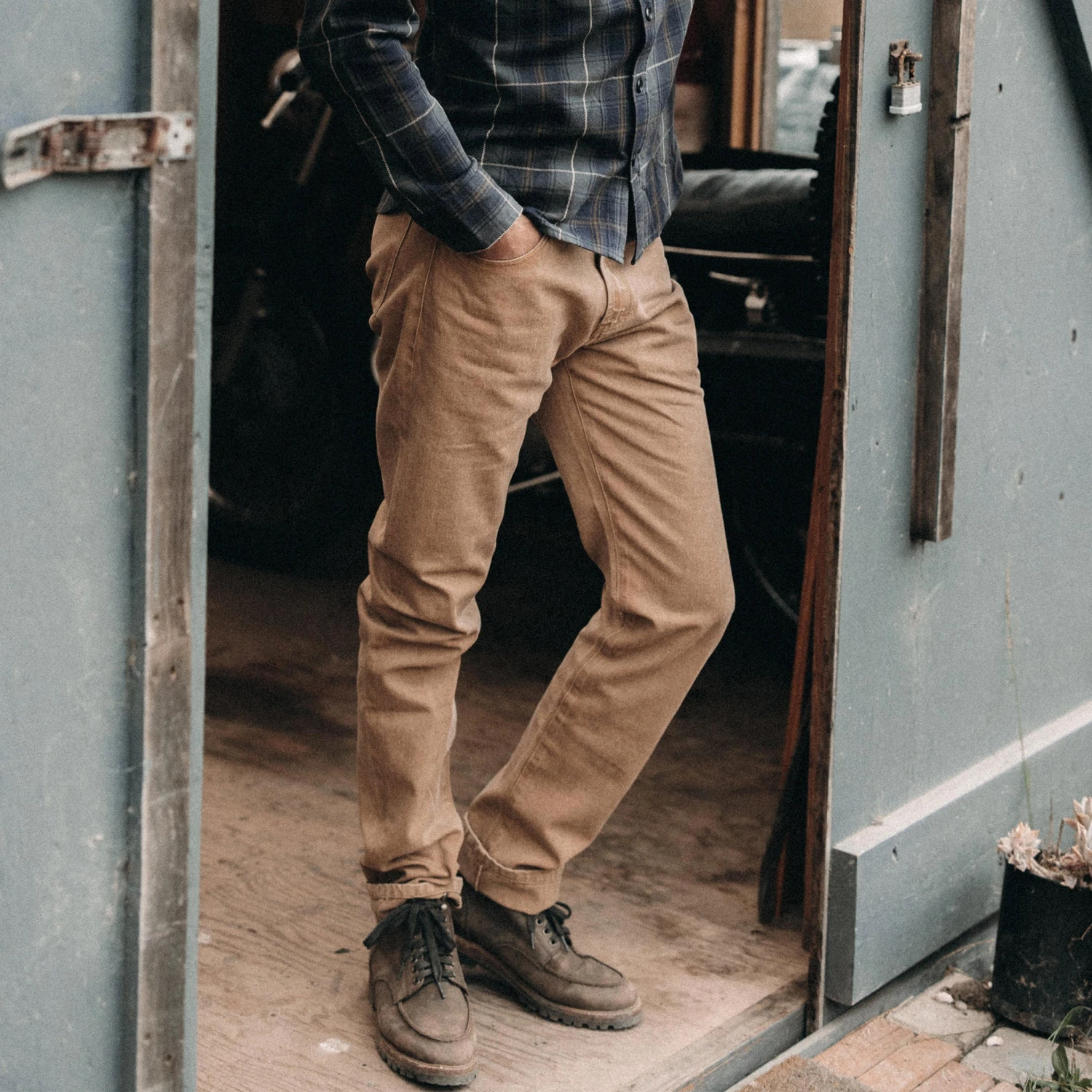 The Slim All Day Pant in Washed Tobacco Selvage from Taylor Stitch