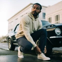 The Slim Foundation Pant in Dark Navy from Taylor Stitch