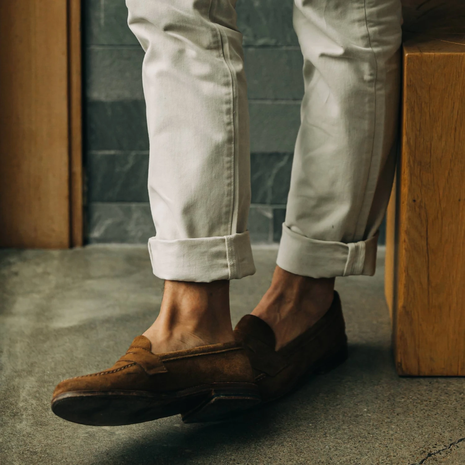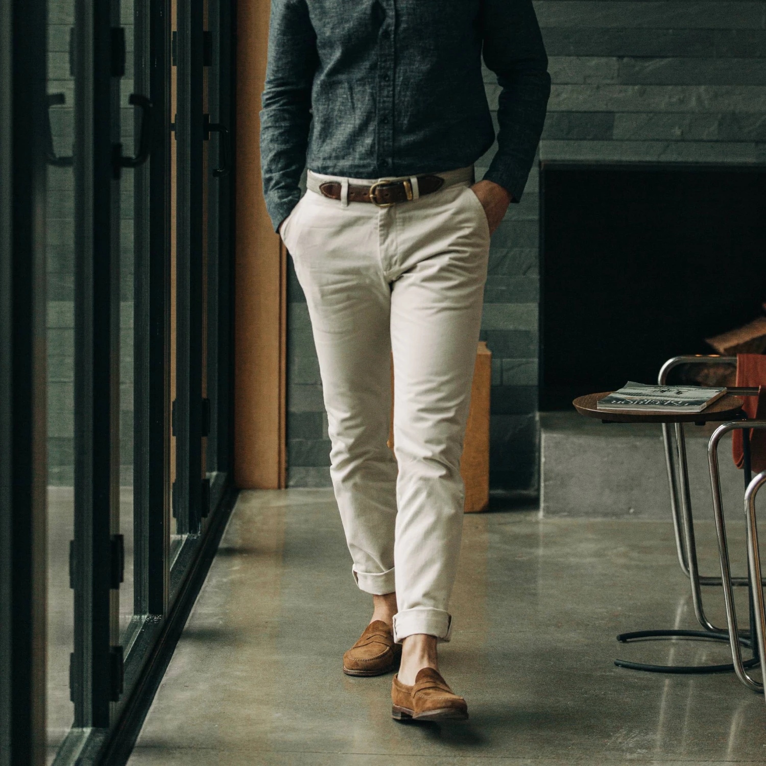 The Slim Foundation Pant in Stone from Taylor Stitch