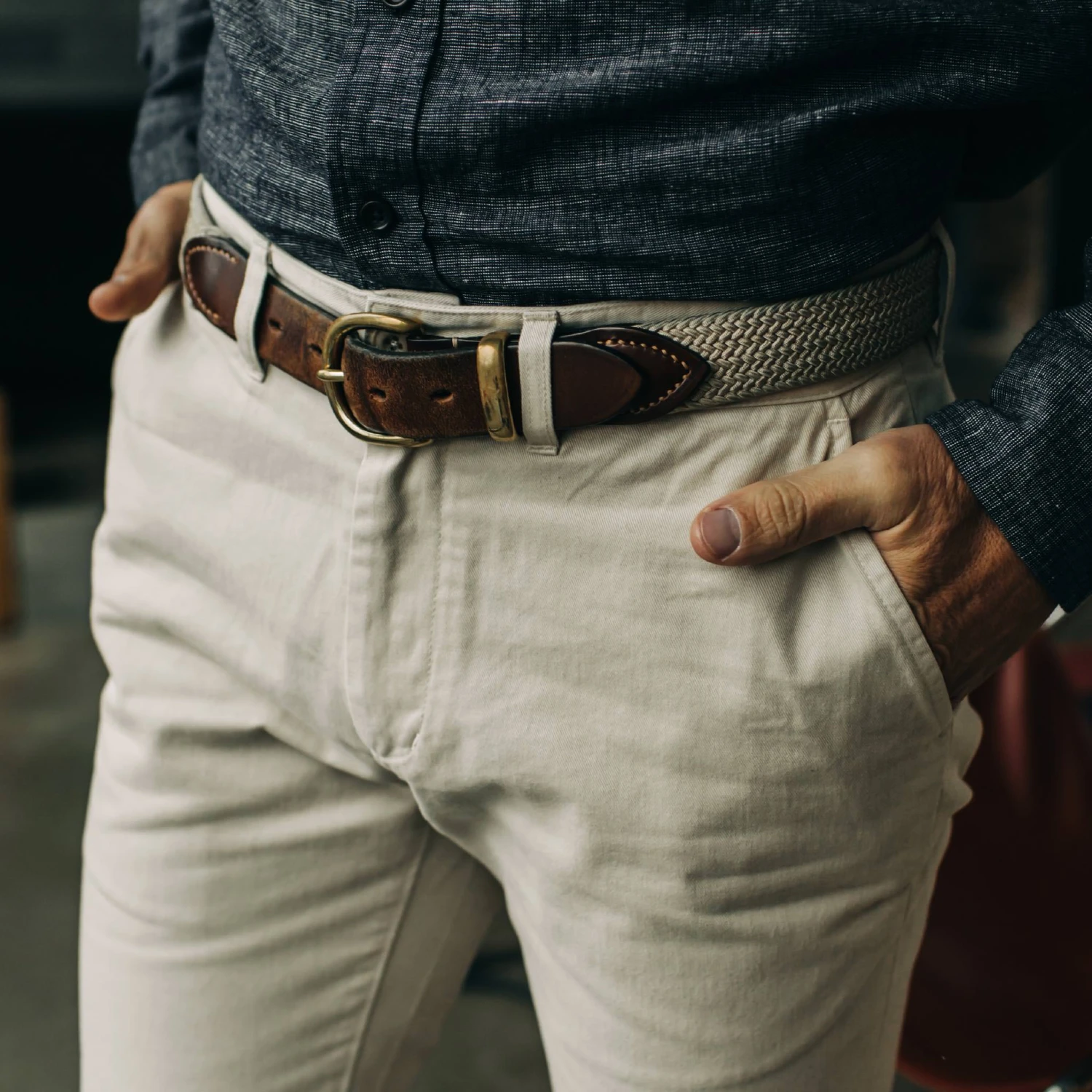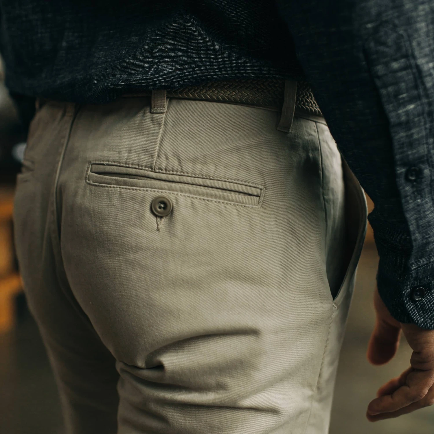 - Two back welt pockets.