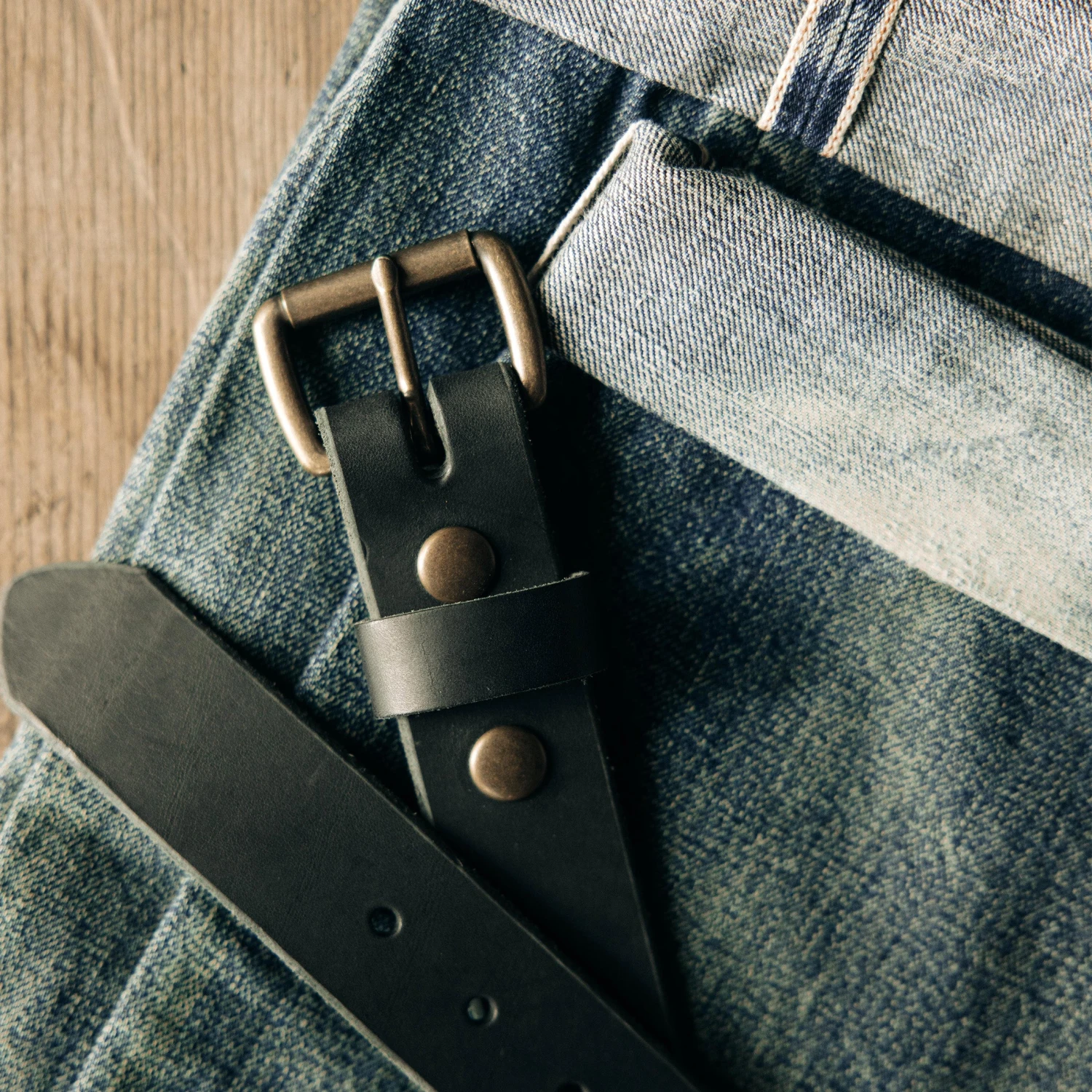 - Solid brass buckle and rivets.