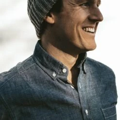 - Chambray-wrapped seams on inside placket, hem, and center back vent.