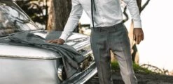 - Two finished back welt pockets.