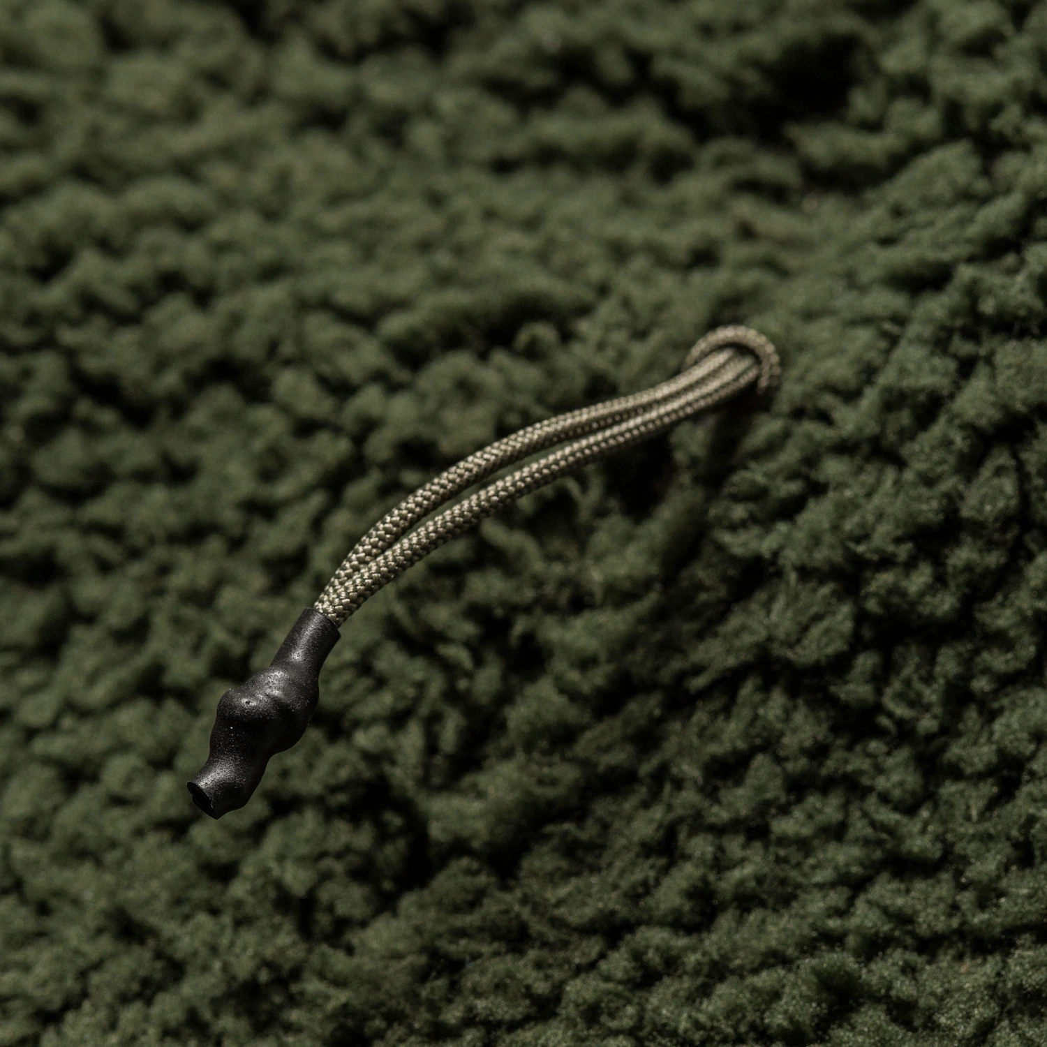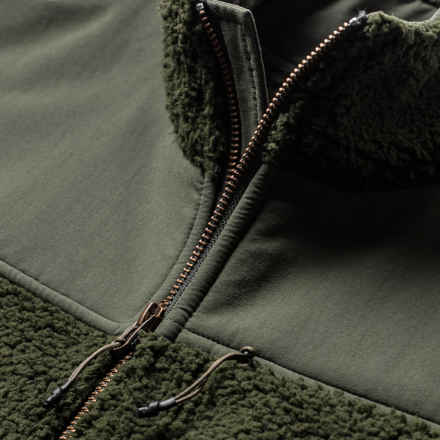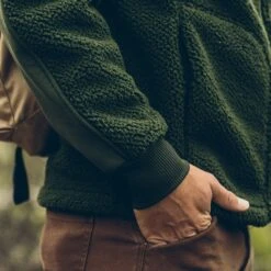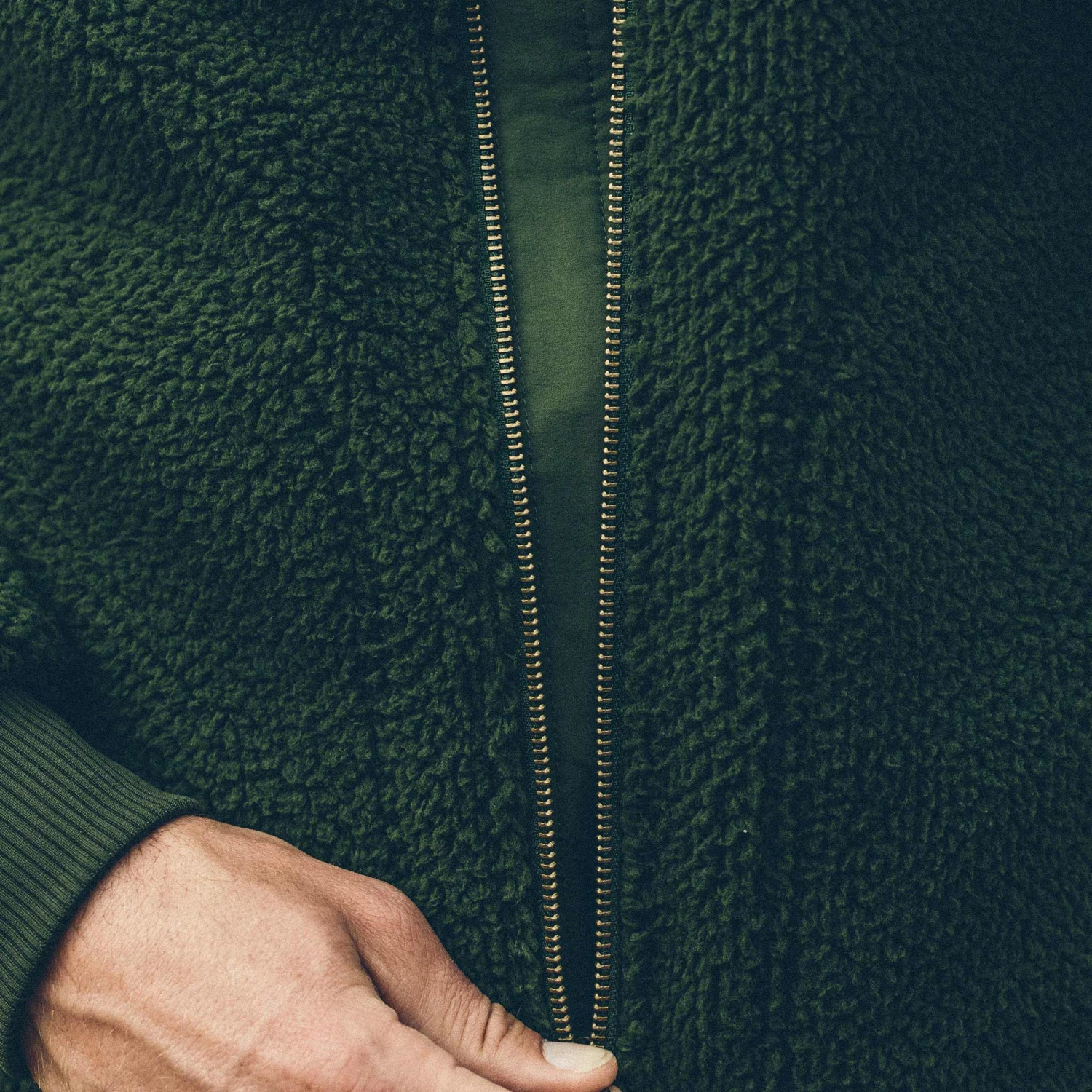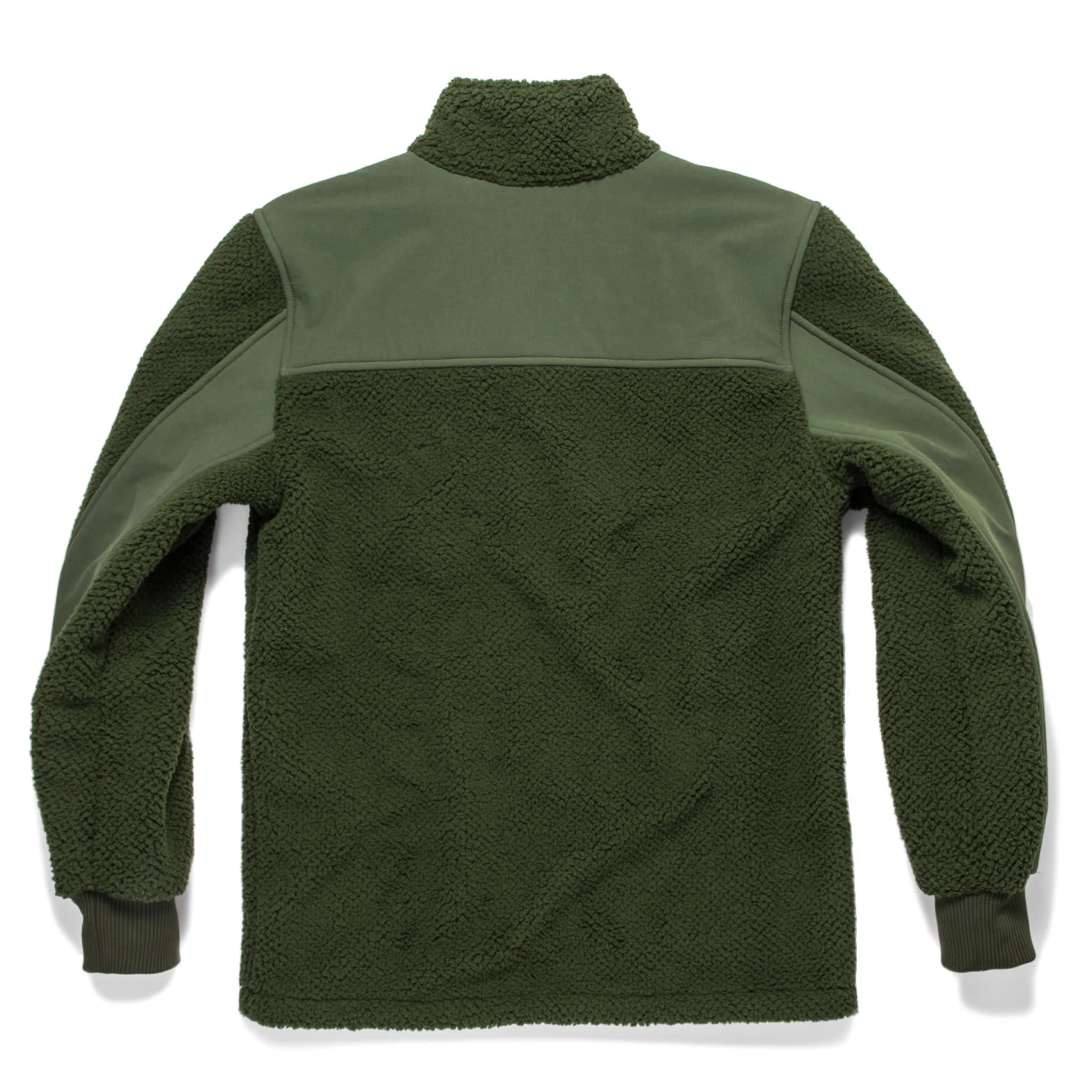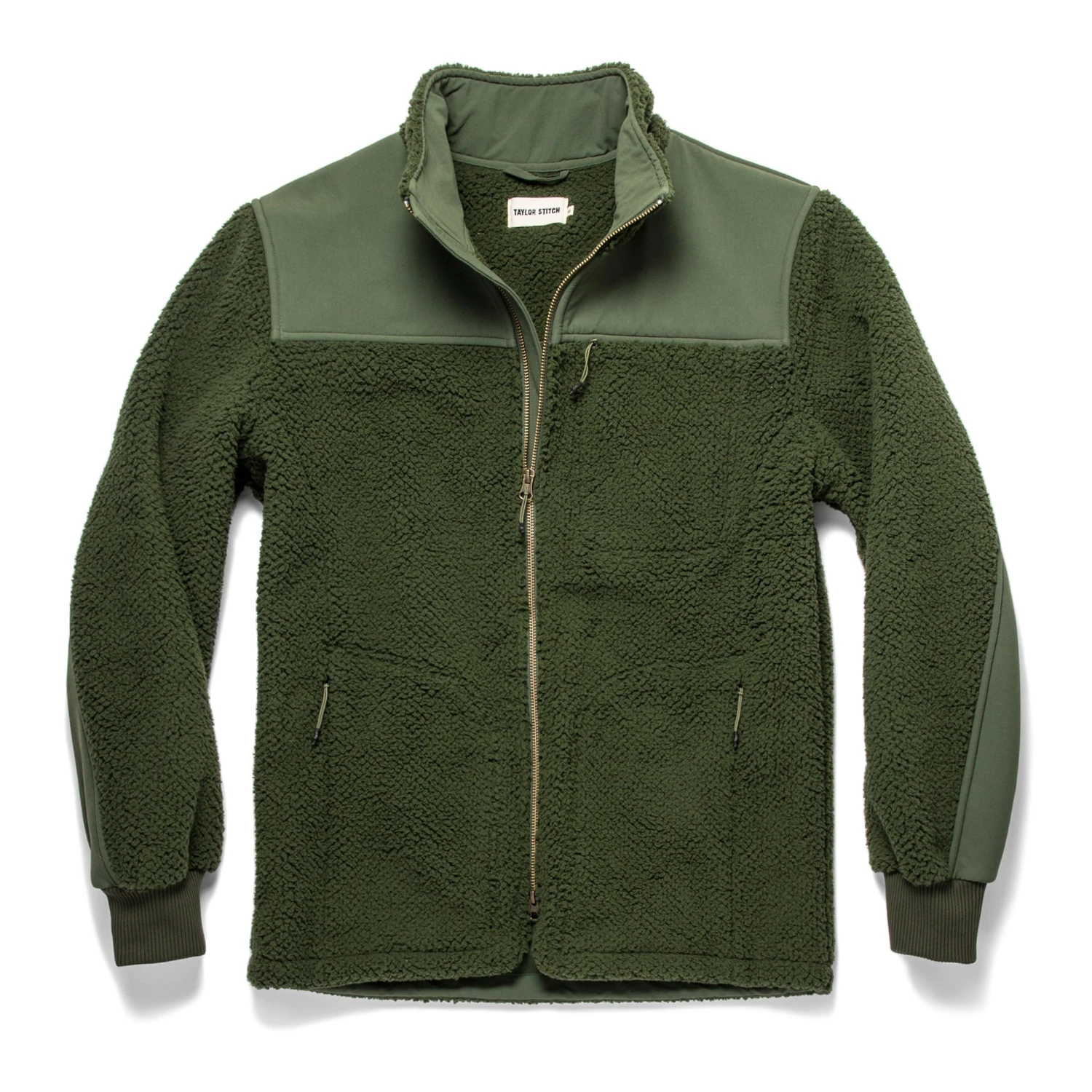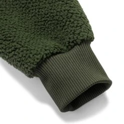 - Main fabric features Sherpa exterior bonded to a fleece backside.