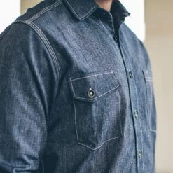 - Selvage detailing on inside right placket, inside cuffs, and side gussett.