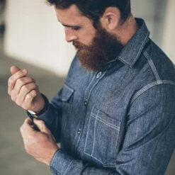 Constructed from salt & pepper cotton chambray, it’s got the bones of your grandfather’s burly work shirt, but with a modern tailored finish. Limited in Indigo.