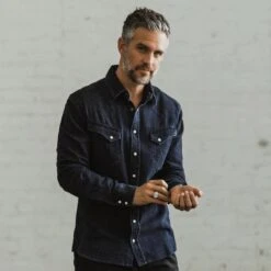 Subtly textured and built to fade beautifully with each wash and wear. The Western Shirt in Indigo Crepe by Taylor Stitch.