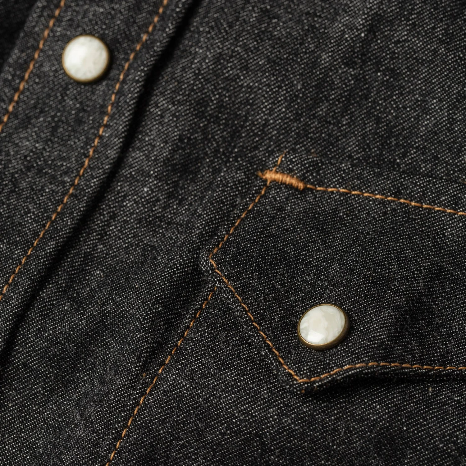 - Genuine YKK western snaps with an antique brass setting.