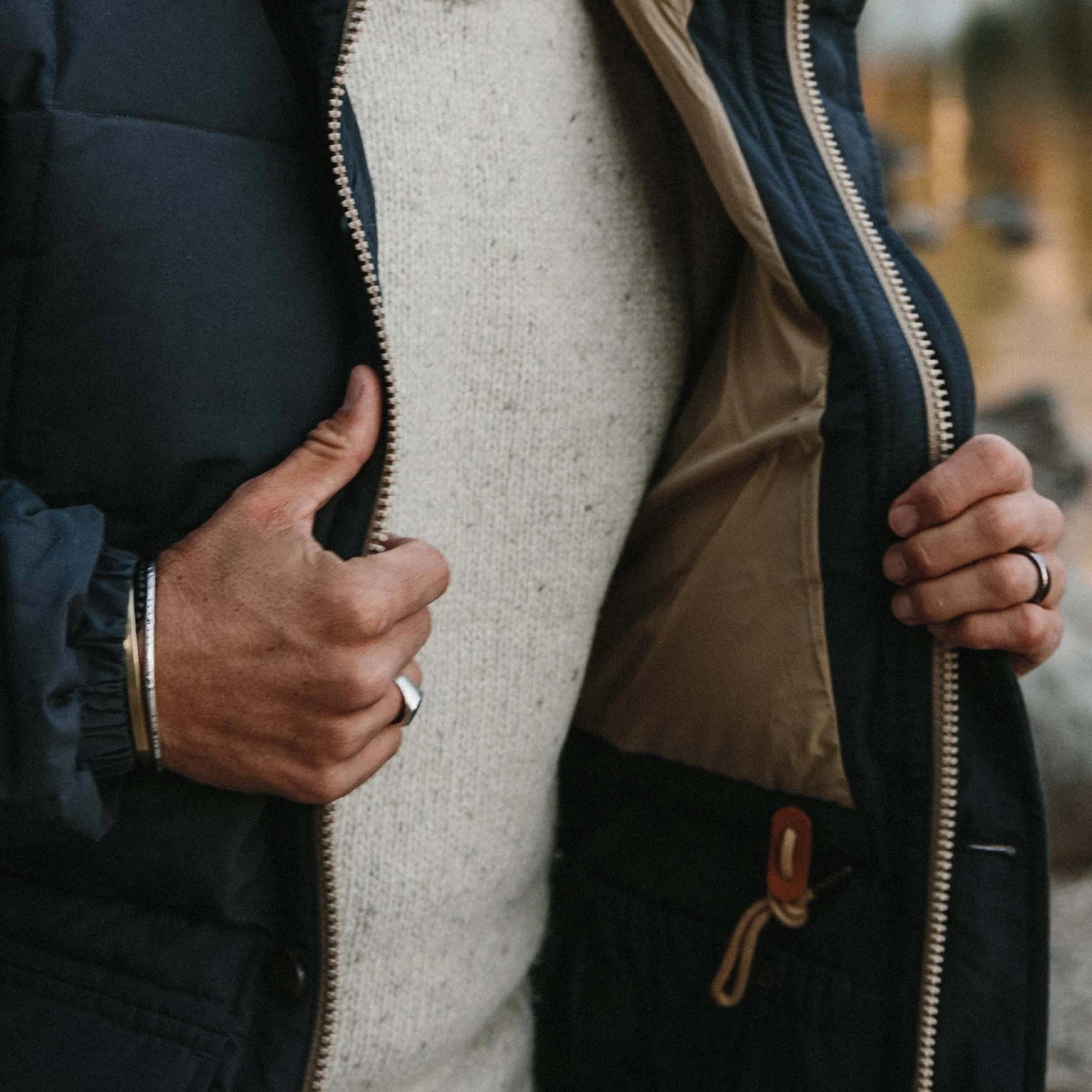 - Two piece hood with waxed cotton draw cord with leather stoppers.